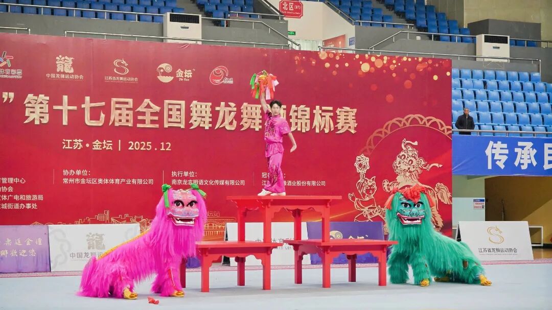 12月5日—10日,由中国龙狮运动协会、常州市金坛区人民政府联合主办的第十七届全国舞龙舞狮锦标赛在江苏常州举行,本次比赛设舞龙、南狮、北狮、彩带龙四个大项47个小项。来自全国22个省(自治区、直辖市)以及粤港澳联队,共94支代表队、近1400人,以龙狮为媒,齐聚金坛展开角逐,用力量和智慧诠释龙腾狮跃的壮志豪情,共同演绎一场力与美的视觉盛宴。