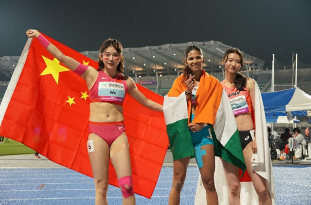 吴艳妮、日本的田中佑美和印度的亚拉吉,这仨人预赛就分在一组,火药味十足,最后奖牌还是她们包圆,田中佑美今年跑出过12秒81的亚洲赛季最佳,吴艳妮12秒96排第三,亚拉吉这次夺冠也冲到了12秒96。