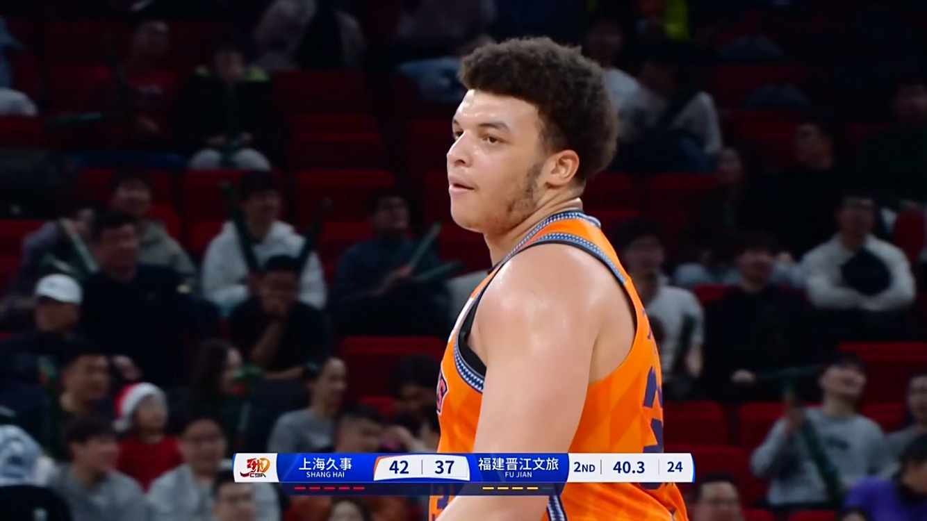 上海男篮打得很简单,基本都是将球给洛夫顿,福建男篮在凯撒的调整下,球还没赢过,但韧劲十足。托马斯一记中距离+反击上篮,连拿4分,迫近了分差。洛夫顿篮下1打3上转身上篮,领先之后有一些放松,反击空接传球,可惜李弘权脱手失误。半场比赛,上海男篮42–38只领先4分,两队三分一共37中5,福建男篮一个助攻没有。