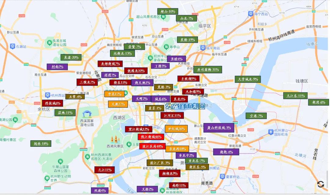 其实这样的板块已经很少了,只有6个:钱江新城、滨江区政府、钱江世纪城、市北西为代表的一江两岸;文教、申花为代表的大城西。