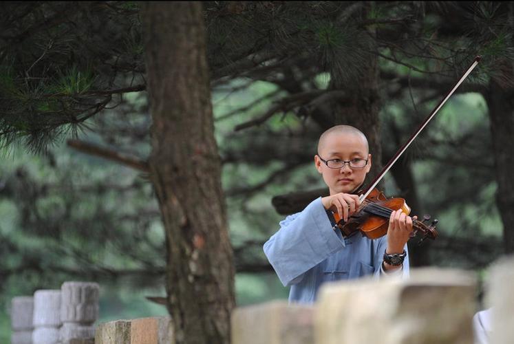 每天清晨当第一缕阳光洒进天台寺,当她站在禅院里演奏小提琴的时候。