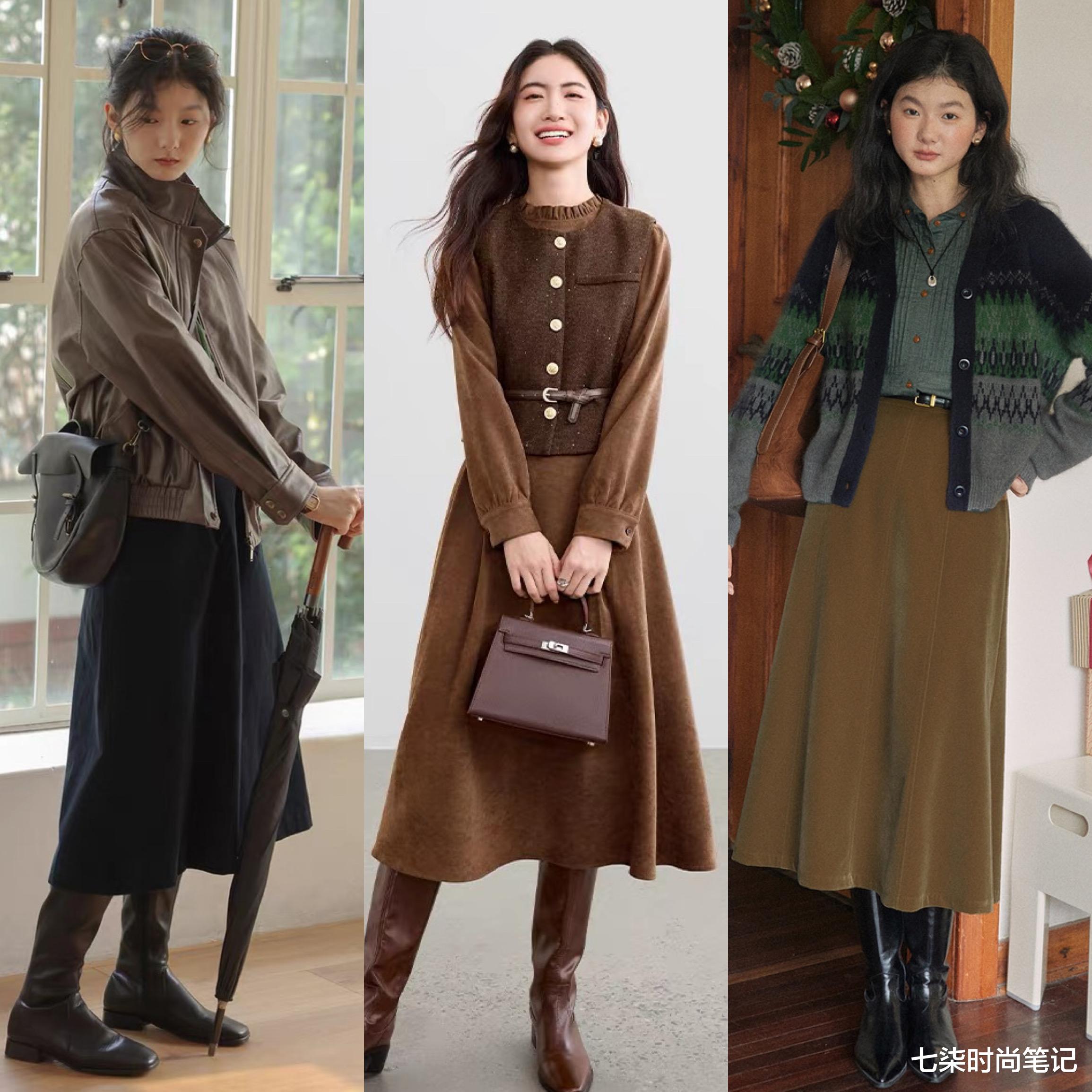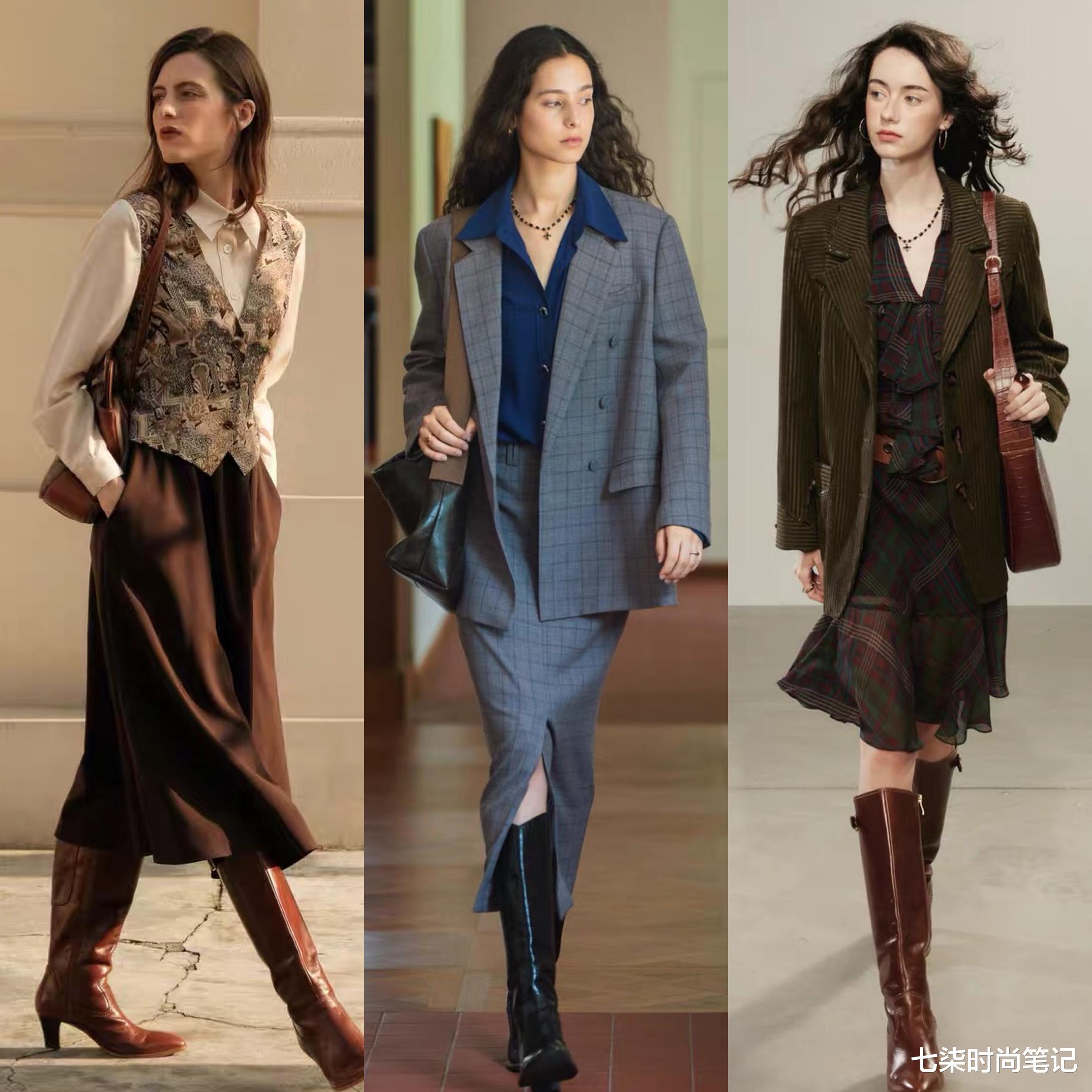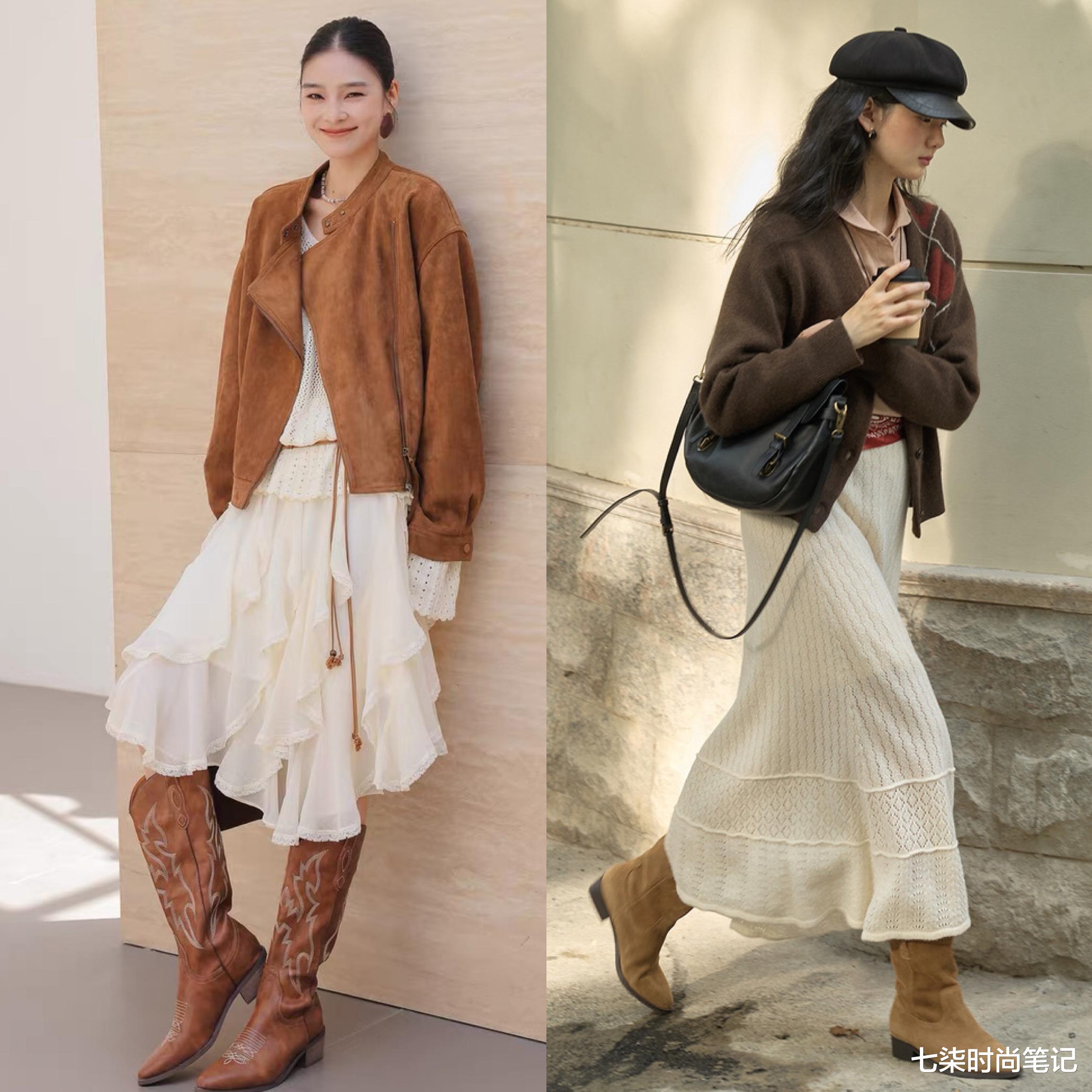 秋天,裙子与靴子的巧妙搭配,温柔飒美,可休闲可通勤,既满足了我们对时髦和保暖的双重需求,又能让我们在寒凉中保持自信优雅。