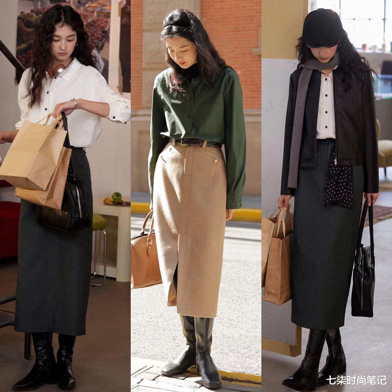 通勤上班,不妨选择利落的直筒半裙搭配靴子,显瘦时髦又不失专业干练。白衬衫搭配黑色直筒半裙,堪称上班族的标配,换上靴子,不仅能打破常规穿出个性,又能轻松去除班味。