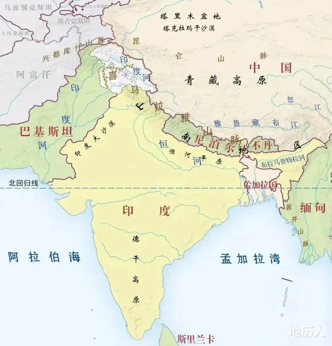 印度位于南亚次大陆,北面与中国接壤,西面与巴基斯坦为邻,东面与孟加拉国和缅甸接壤,三面包围尼泊尔和不丹,印度国土面积为298万平方千米,世界排名第七。印度是世界上人口最多国家,根据联合国公布世界人口数量显示印度人口为14.2亿。印度拥有100多个民族,其中印度教斯坦族是主体民族,大约占人口比例为46%。2023年印度经济总量为3.6万亿美元,是世界第五大经济体。2023年印度人均GDP为2612美元。