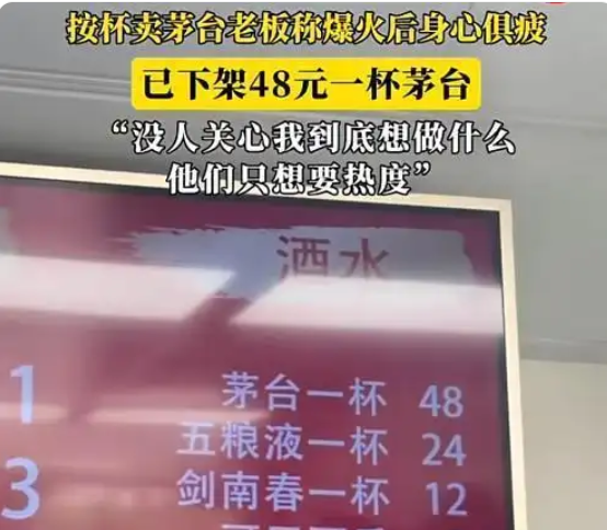 见此场景,面馆老板一时间不知所措。想当初他一周都卖不了几杯茅台,如今在网上走红后,客流量暴增后却感到身心俱疲,就连店铺原来的那些老顾客都被这些人群给吓跑了。更令他不解的是,还有些网友质疑他按杯卖茅台是一种营销手段。最令他难受的是,当初按杯卖茅台是想让打工者体验一下茅台的味道,然而这些打工者早已不见踪迹。