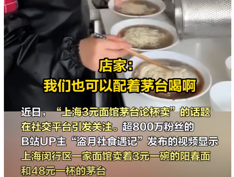 其实在我国,茅台早已超越酒的本质,成为财富地位的象征,老板将茅台和阳春面一起摆在菜单上,是为了让吃面的顾客不会有消费过低的羞辱感。然而令他没有想到的是,竟然会有四面八方的人为了追逐热点,到他的店里搞直播拍视频,让店里的正常营业都有问题,更让他难以接受的是,他还得整日面对客流管理和舆论的压力。