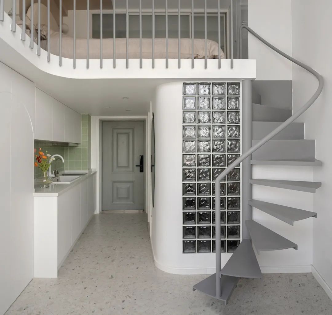 天呐!23㎡复式公寓居然能装下「双层豪宅梦」?这位90后姑娘用积蓄买下小户型,设计师妙手改造后,复古绿+旋转楼梯+玻璃砖直接美哭!看完立马想搬进去住!