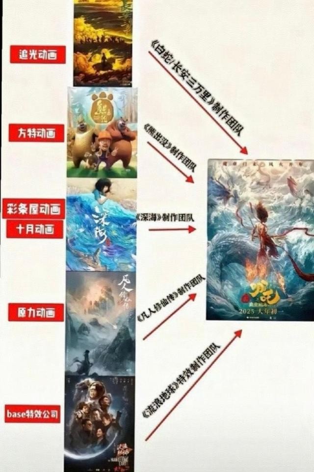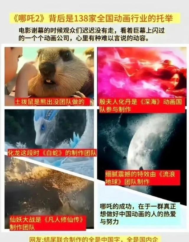 在《哪吒2》的片尾当中,观众们几乎看到了中国所有能叫的上名字的动画公司:《熊出没》的制作公司方特动画、《白蛇》的制作公司追光动画……