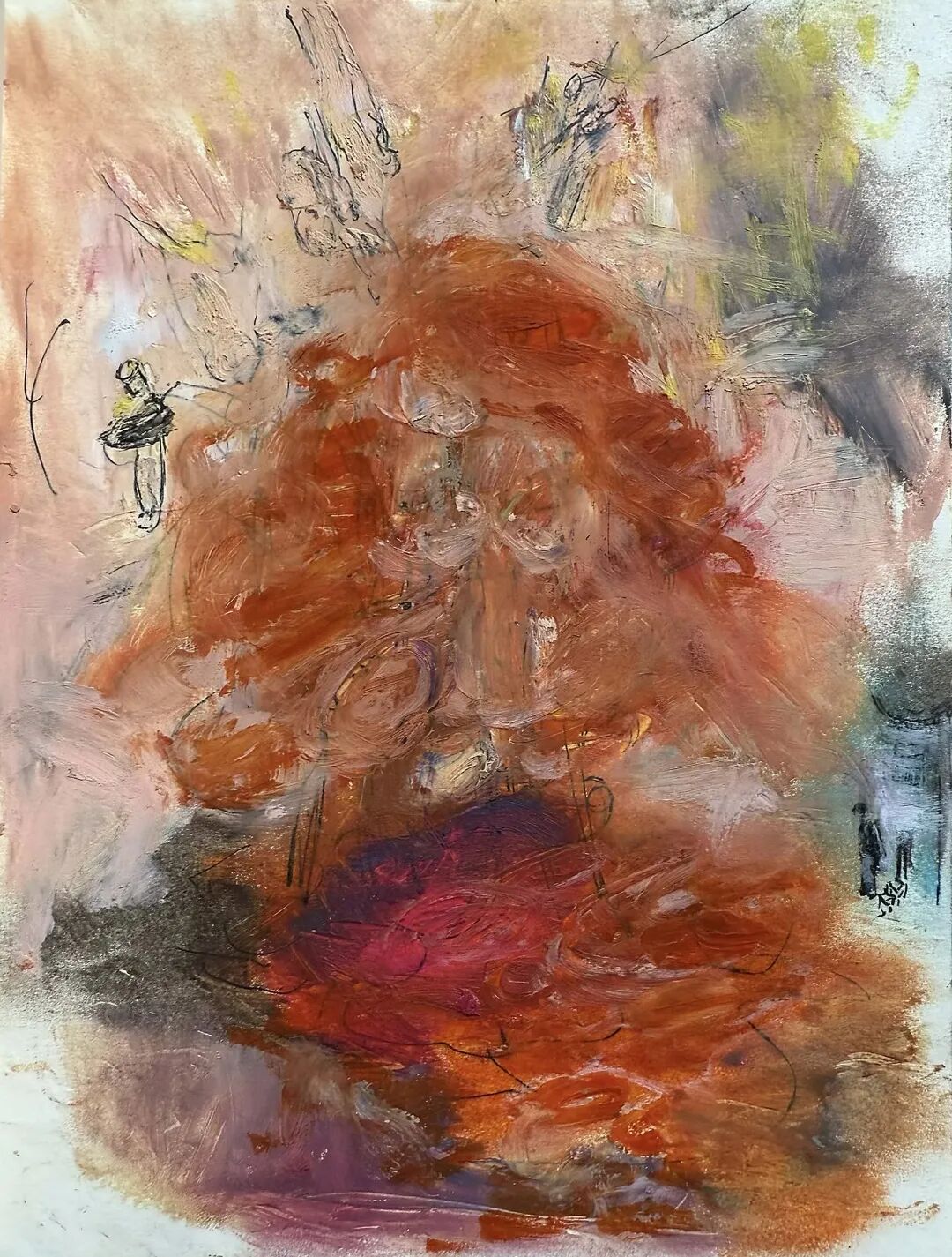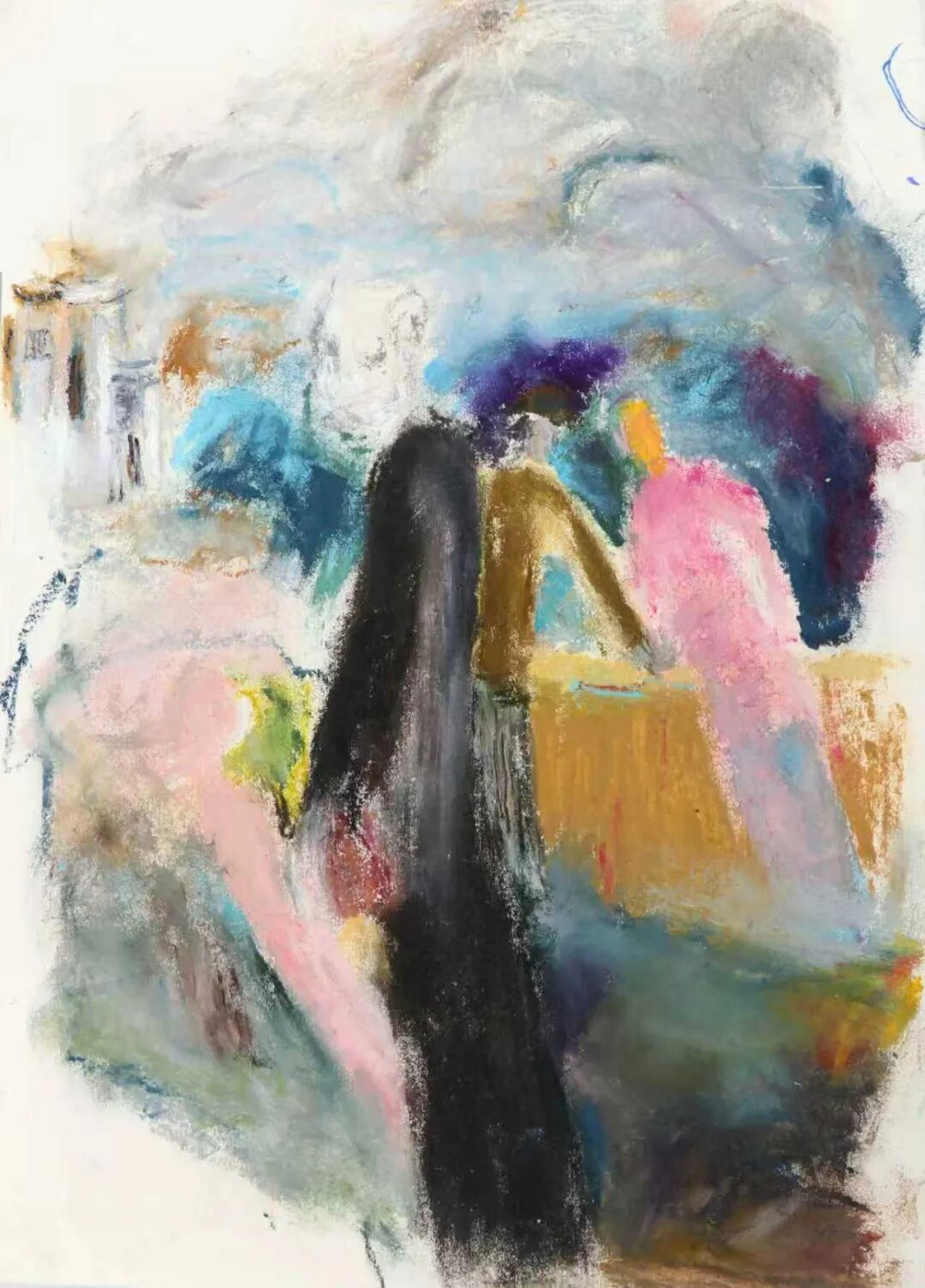 静子以混沌的笔触锚定了艺术的终极母题:情感。纸媒的余晖与Ai的浪潮轮番冲刷着艺术的边界,唯有情感是超越媒介的永恒火种。 她画面中的惬意松弛,不是技法的妥协,而是精神的突围—-那些未被写实枷锁禁锢的线条与色块,恰恰盛满了最丰沛的生命质感。艺术的终极追求,从来不是复刻他人的路径,而是找到独属于自己的言说方式,从这一点而言,她已经走在正确且珍贵的道路上。