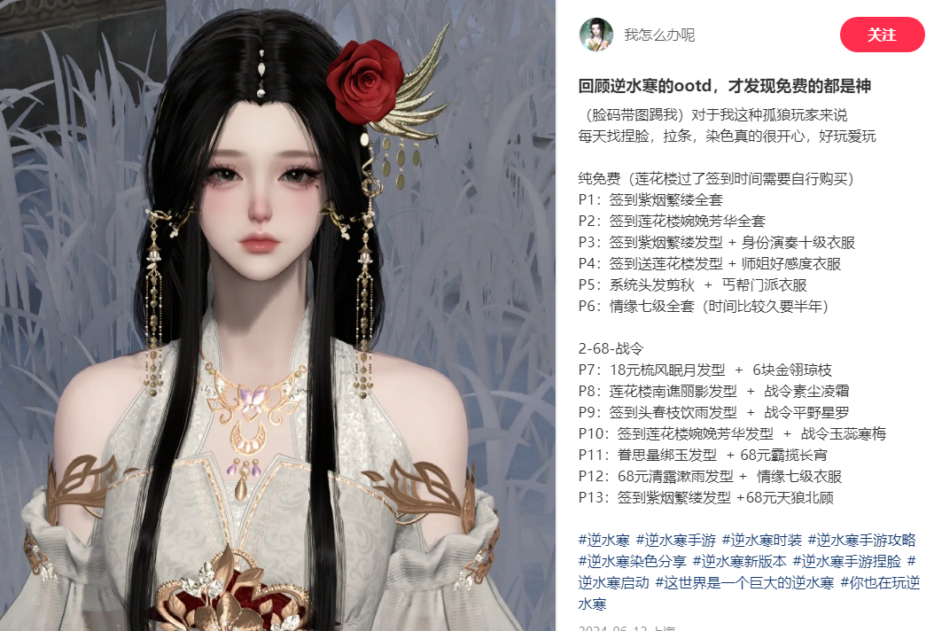 据悉,这位女生晒出的衣服都来自古风武侠手游《逆水寒》,别看一套套衣服都是层层叠叠的国风款式,但其实都不需要花钱就能收入囊中。
