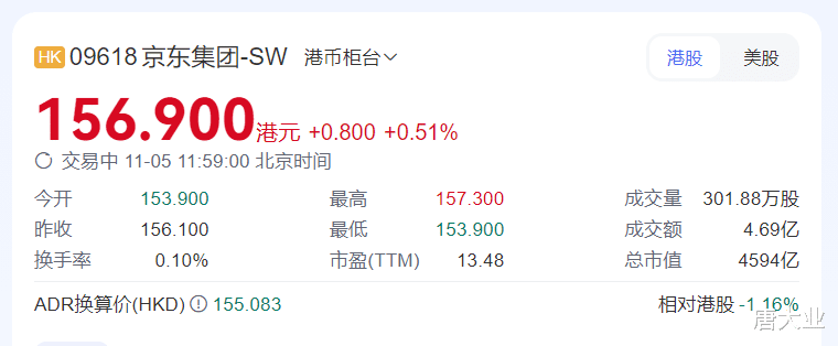 随着事件不断升温,京东的股价持续受到重创。截至11月5日12点,京东港股来到了156.8元每股,虽然上涨了0.45%,却相比10月初下跌了11%左右,市值损失超500亿。