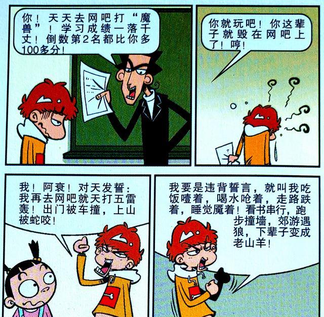 结语:其实在笔者看来沉迷游戏确实会影响学习成绩,但适当的玩游戏也可以释放同学们的学习压力,漫画中小衰还是自制力太差,居然被激将法打破了戒掉游戏的决心,所以同学们可不能像漫画中的小衰一样哦。