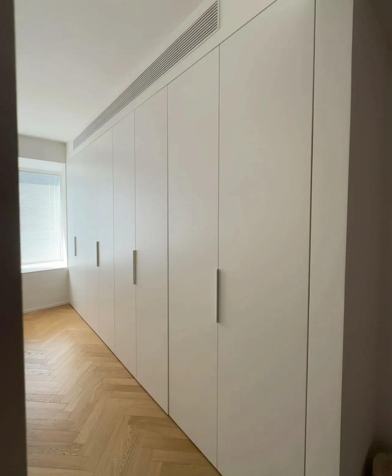 折叠门的优势在于,开启时整个门板可以全部推向一边,防碰撞、视野开阔,可以一览衣柜内部全貌,且不占用额外空间;而关闭时,又跟普通柜门一样简洁大气。