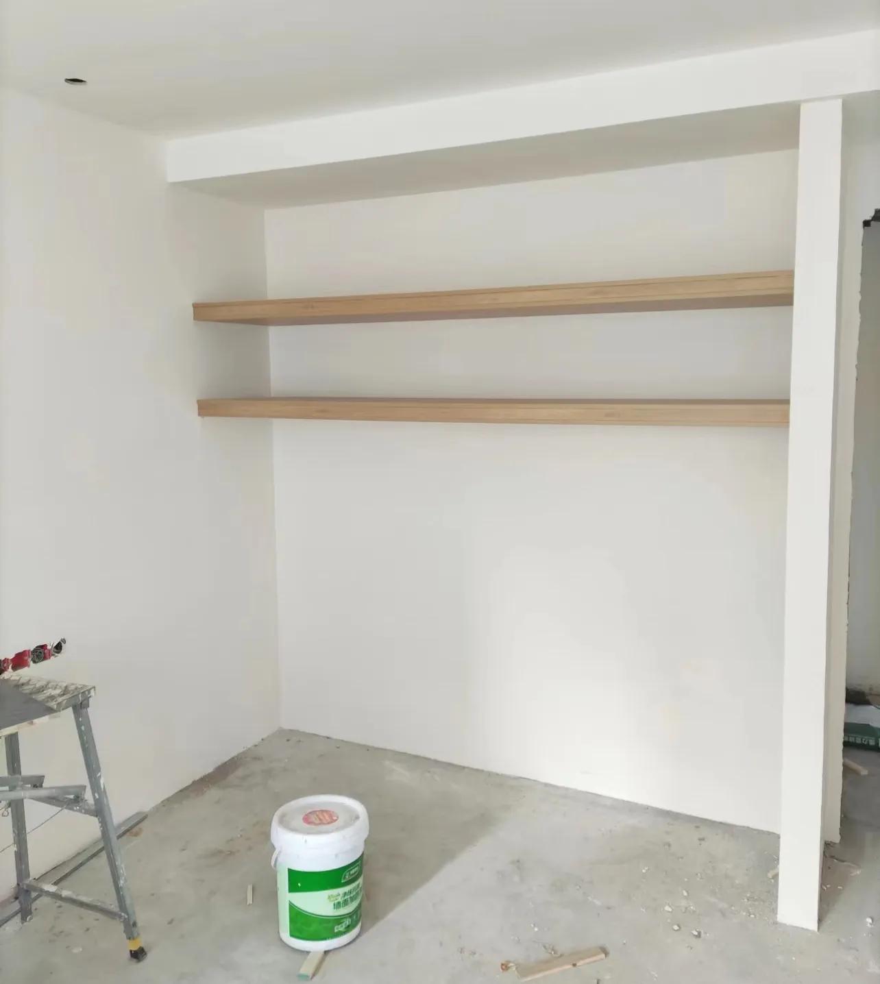 6、一块侧板打造的衣橱衣柜一般人做衣橱,早期肯定要么是瓦工砌隔断、要么用木工板做隔断,后期再安装柜门。