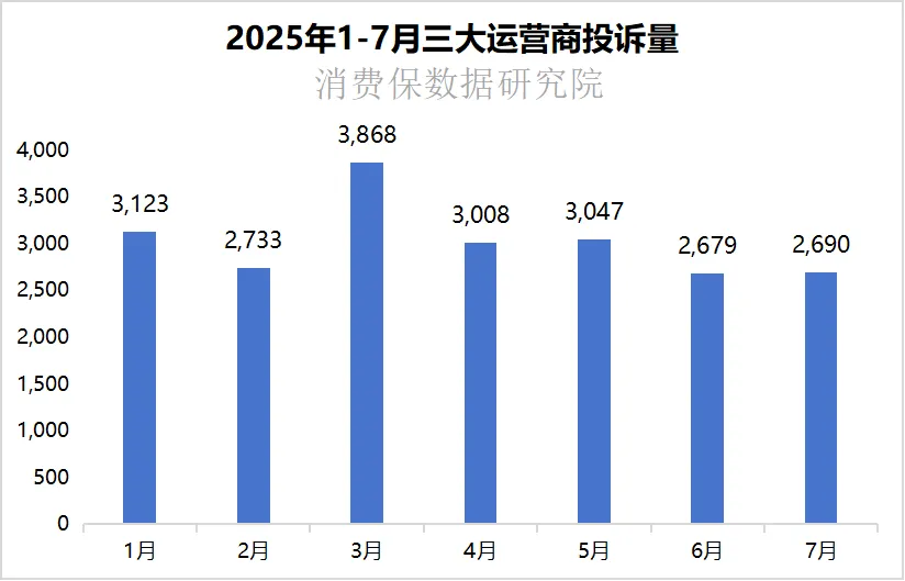 今年3·15晚会,三大运营商因为资费不明、隐形消费等乱象被点名,三月份亦成投诉集中爆发月份,高达3868件,在4-7月,投诉相对回落,呈小幅下降趋势。