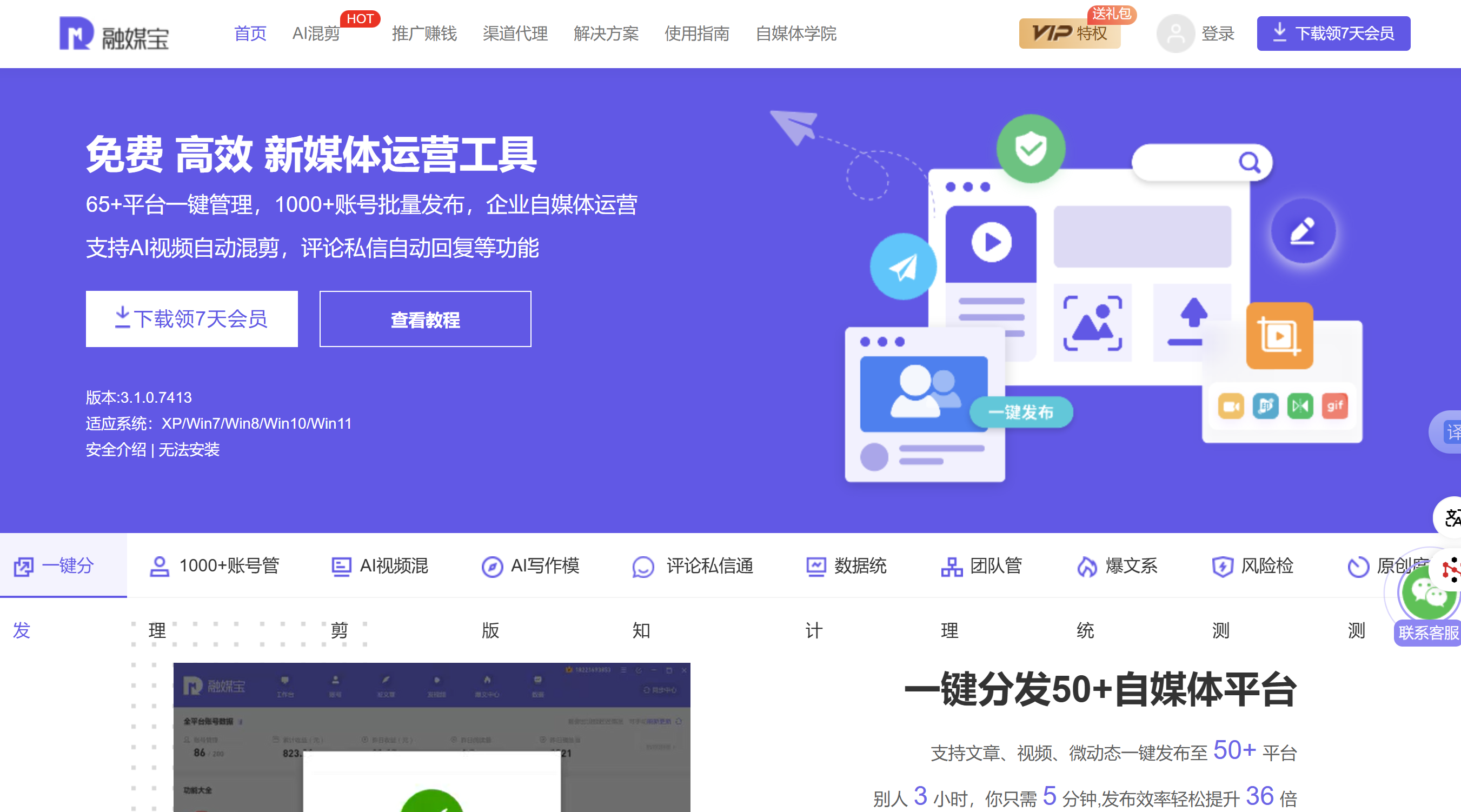融媒宝最让我惊艳的功能是其一键分发能力。它支持50+主流平台的无缝对接,包括微信公众号、抖音、B站、小红书、知乎等图文与视频平台。