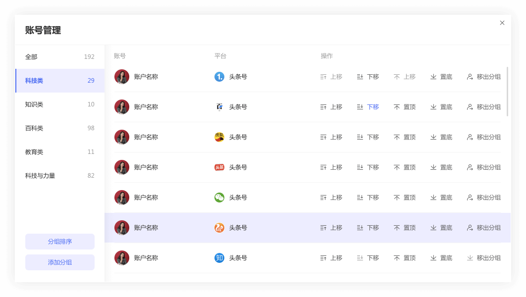 对于拥有矩阵账号的数码博主或MCN机构,融媒宝支持1000+账号分组管理,主账号可以灵活分配子账号操作权限。