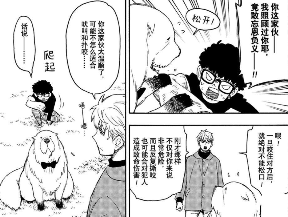 弗朗基被彭德压得喘不过气,直接打出感情牌:“你这家伙,我可是照顾过你的耶,竟敢忘恩负义。”望着怒斥自己的弗朗基,回想起前些时日的生活,彭德还是松开了口。彭德松口,黄昏可就不开心了,毕竟这样的行为,在实战中是十分危险的,另外即便是反复地撕咬,也可能会对犯人造成致命性伤害。黄昏认为彭德实在是太温顺了,吠叫以及扑咬都不太适合他。