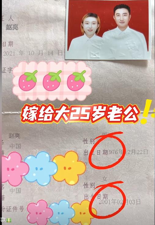 2021年10月13日晚上,赵亮和小郑从天津坐上了火车,5个小时后,他们从太原下了火车。当天一早,两个人就进入太原市民政局领了结婚证。就这样,刚刚达到法定结婚年龄的小郑(20岁)嫁给了45岁的天津大叔老赵。