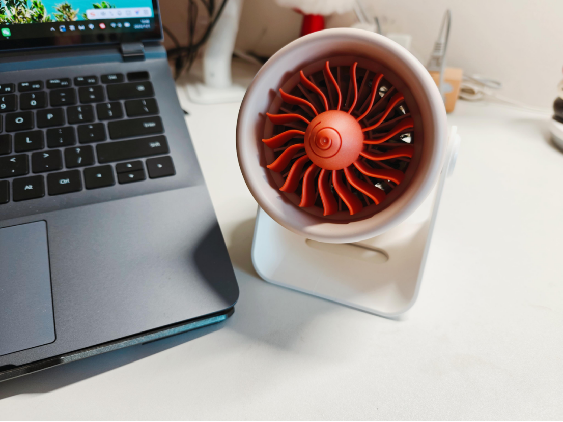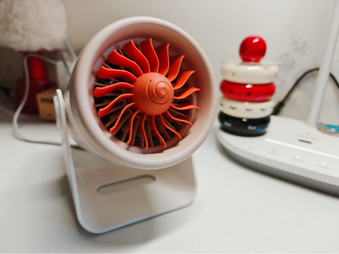 设计风格简约时尚,米白色机身搭配橙色涡轮扇叶,形成鲜明对比,增添活力感。外观类似飞机涡扇发动机,外观非常讨喜,相信你看一眼就会爱上它。
