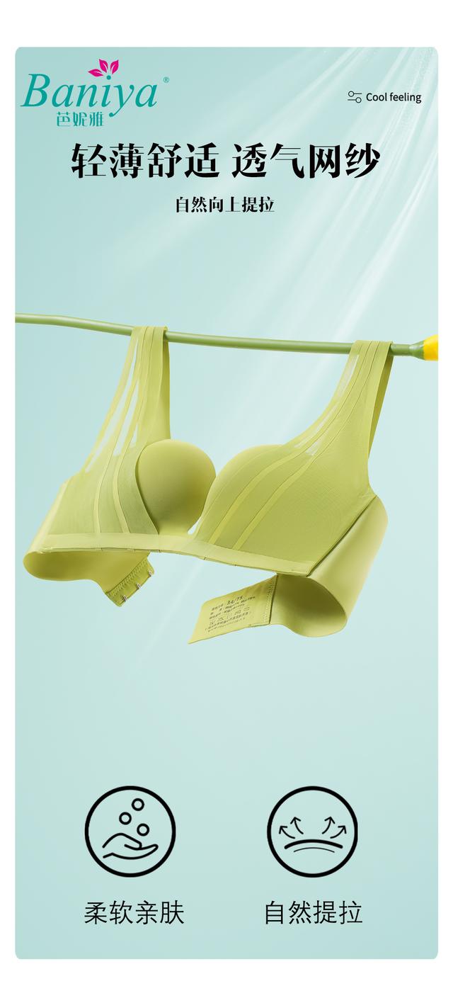 三重提拉+动态贴合,让胸型时刻在线。芭妮雅这款6301文胸以网纱为基底,创新采用“三重提拉”设计:前侧提拉条按ABC三区精准分配不同弹力,从胸骨到腋下形成立体支撑网,哪怕胸部下垂、外扩也能被稳稳“托住”;伸缩罩杯面料如第二层肌肤般动态贴合,抬手、久坐时也能保持挺立,半杯剪裁经典不挑人,既保留无钢圈的舒适感,又通过工学结构实现聚拢,小胸穿能显大,大胸穿更显挺拔,堪称“不动声色的胸型管理大师”