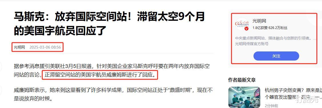 不过对于马斯克的这一观点,正在国际空间站上执行任务的威廉姆斯和威尔莫尔却表示强烈反对。