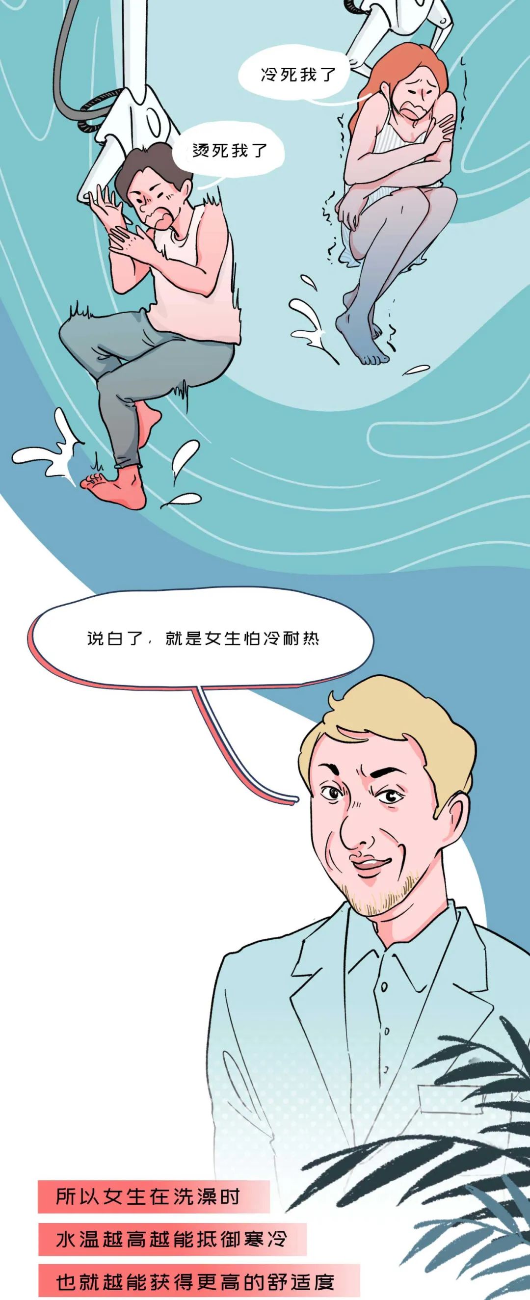 还有 “节奏时差暴击”。女生洗澡是 “精致流程线”:卸妆、洁面、磨砂膏、沐浴露、发膜一步不落,光是搓个澡就能搓出 “仪式感”;男生洗澡往往是 “速战速决线”:冲湿、打泡沫、冲干净,前后不超过 5 分钟。结果就是 —— 她刚涂好发膜准备等 3 分钟,男生已经擦干身子靠在门口催 “你好了没?我渴了想喝可乐”;或者他洗完了想帮忙递毛巾,一伸手把她的磨砂膏碰掉在地上,还补一句 “这玩意儿咋这么滑?”,谁懂这种 “我在认真护肤,他在认真搞破坏” 的无奈啊!