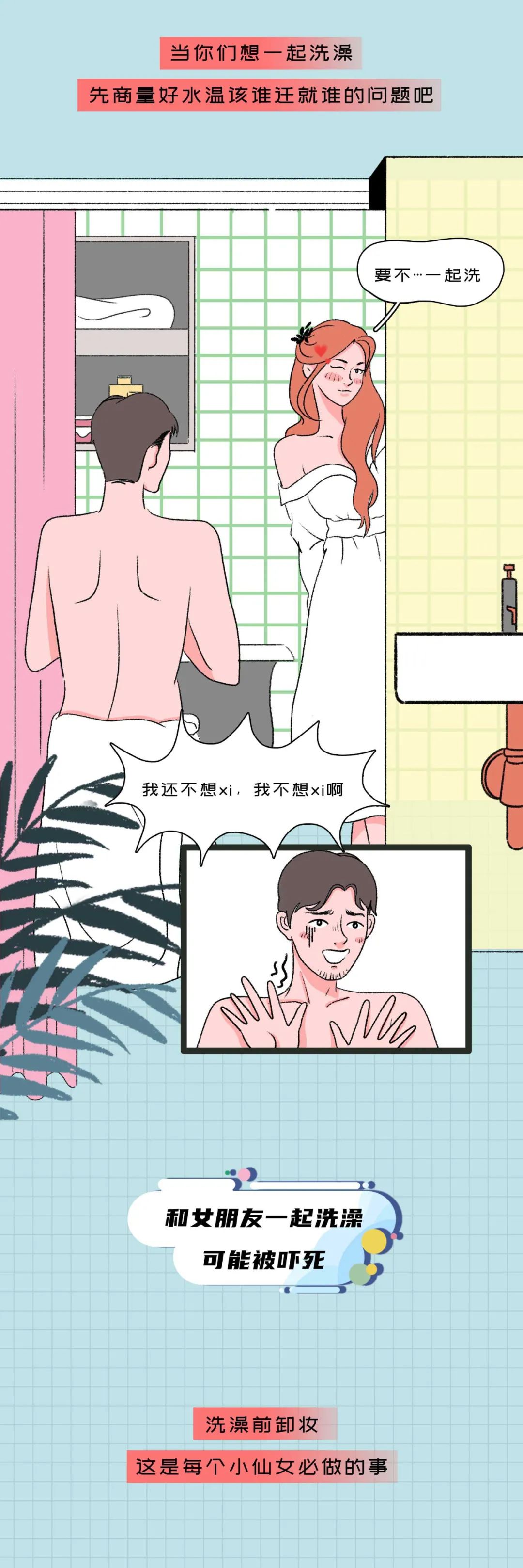 其实真不是一起洗澡不甜,而是 “浪漫想象” 里没算上 “现实里的鸡毛蒜皮”:没有偶像剧里的柔光滤镜,只有互相抢地方、催进度、收拾烂摊子的真实。但有意思的是,吐槽归吐槽,下次她喊 “你帮我递下沐浴露”,你还是会乖乖挤进去;他催你快点时,你也会笑着把泡沫抹在他鼻子上 —— 这些小麻烦反而比 “完美浪漫” 更像情侣间的小互动,毕竟啊,能一起接受 “洗澡像打仗” 的人,才是能一起扛住生活琐碎的人~
