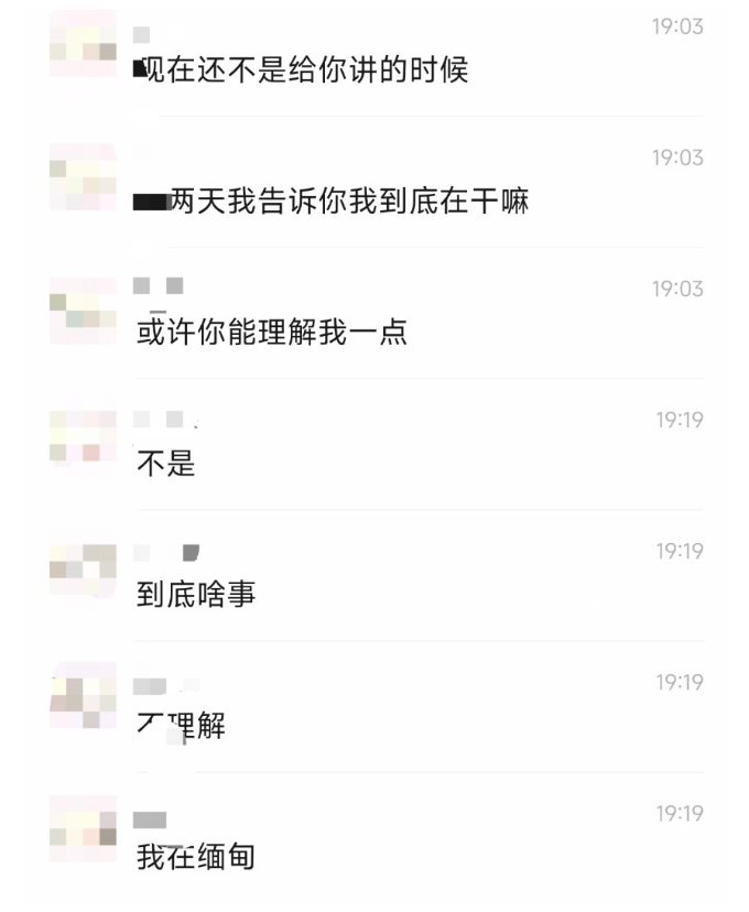 更诡异的是,彭宇轩曾向女友透露,自己有个“云南姑姑”介绍工作,日薪200元。但后来他又改口,承认“姑姑”其实是网上认识的陌生人。7月3日,他给女友发定位,显示已在缅甸,并坚称自己“安全自由”,但拒绝透露具体工作内容。