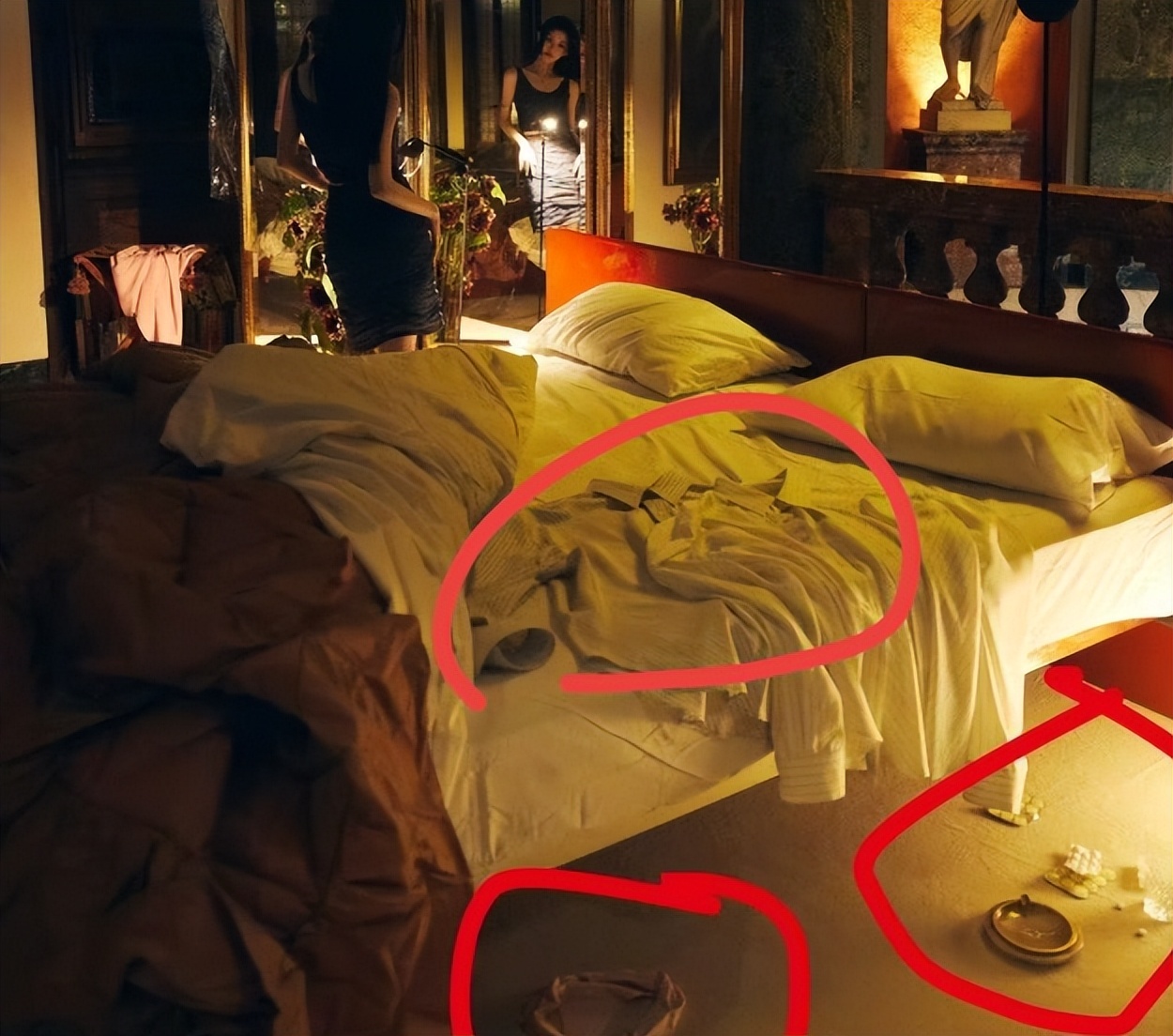不是穿搭不好看,是照片里藏了些“不该出现”的东西:床上摆着件男士衬衫,地板上团着块布看着像男士内裤,旁边还散落着几盒没标清名字的药。
