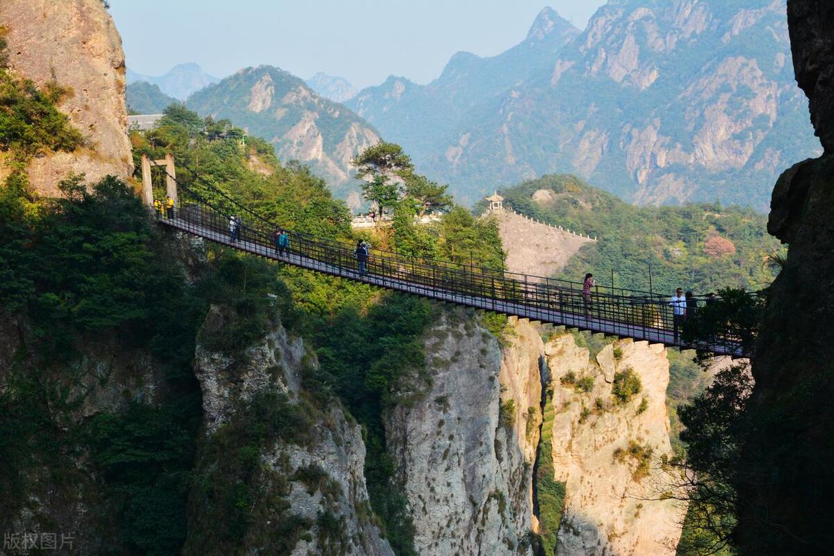 三、江郎山:丹霞奇观的终极礼赞“望而趋,二十里……忽裂而为二,转而为三”衢州江山的江郎山以“三爿石”著称,三座丹霞石峰拔地而起,徐霞客三度探访,留下2600余字游记。他通过与黄山、雁荡山的对比,总结江郎山的“奇、险、神”三大特质。其中“一线天”景观高312米、宽不足4米,被他称为“全国之最”。登顶郎峰时,他冒险攀爬88度陡坡,最终发出“一览众山小”的豪叹,这种“险处观绝景”的执着,正是其探险精神的缩影。