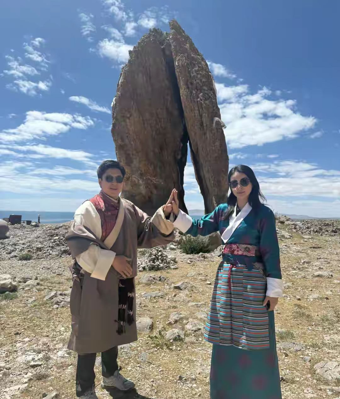 在忙完公务之后,两人便开始到西藏有名的景点去打卡留念。