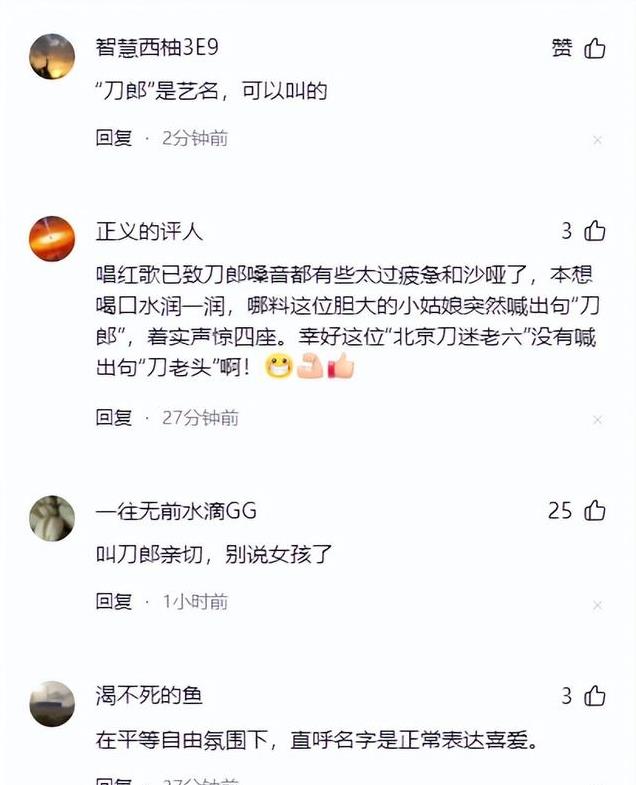 有网友批评说,从女孩喊刀郎的声音中,可以听出她还是个孩子,晚辈直呼长辈名字,确实会被批评没大没小。