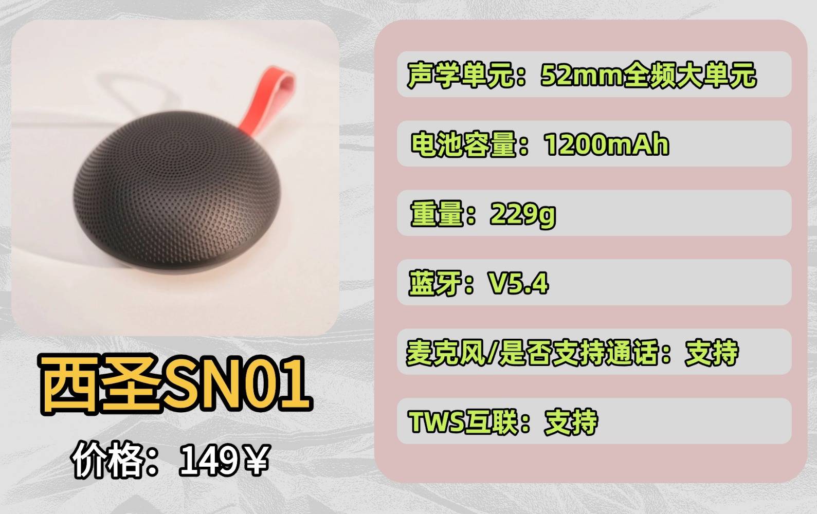 总结:这款西圣SN01凭借其小巧的体积、出色的音质、长效续航以及高品质的防护,被公认为“百元价位性价比最高的蓝牙音箱”,非常适合预算有限但对音质不妥协的用户。
