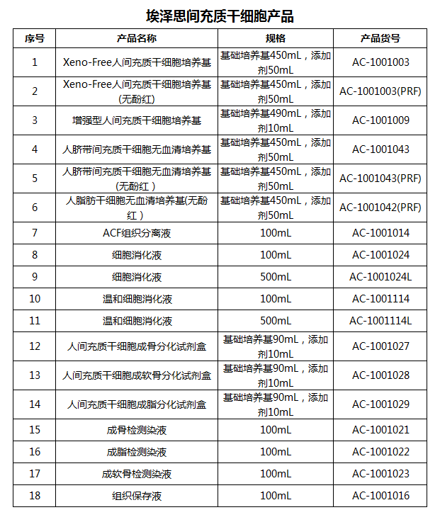 增强型人间充质干细胞培养基是埃泽思生物(Applied Cell®)自主研发的一款无外源动物成分的人间充质干细胞培养基。可应用于脂肪、脐带、胎盘和骨髓等不同组织来源的原代分离、扩增与传代培养,并保持其多向分化潜能。本产品内毒素水平低于中国药典标准,生产过程遵循 ISO9001 体系,并符合 GMP指导原则。