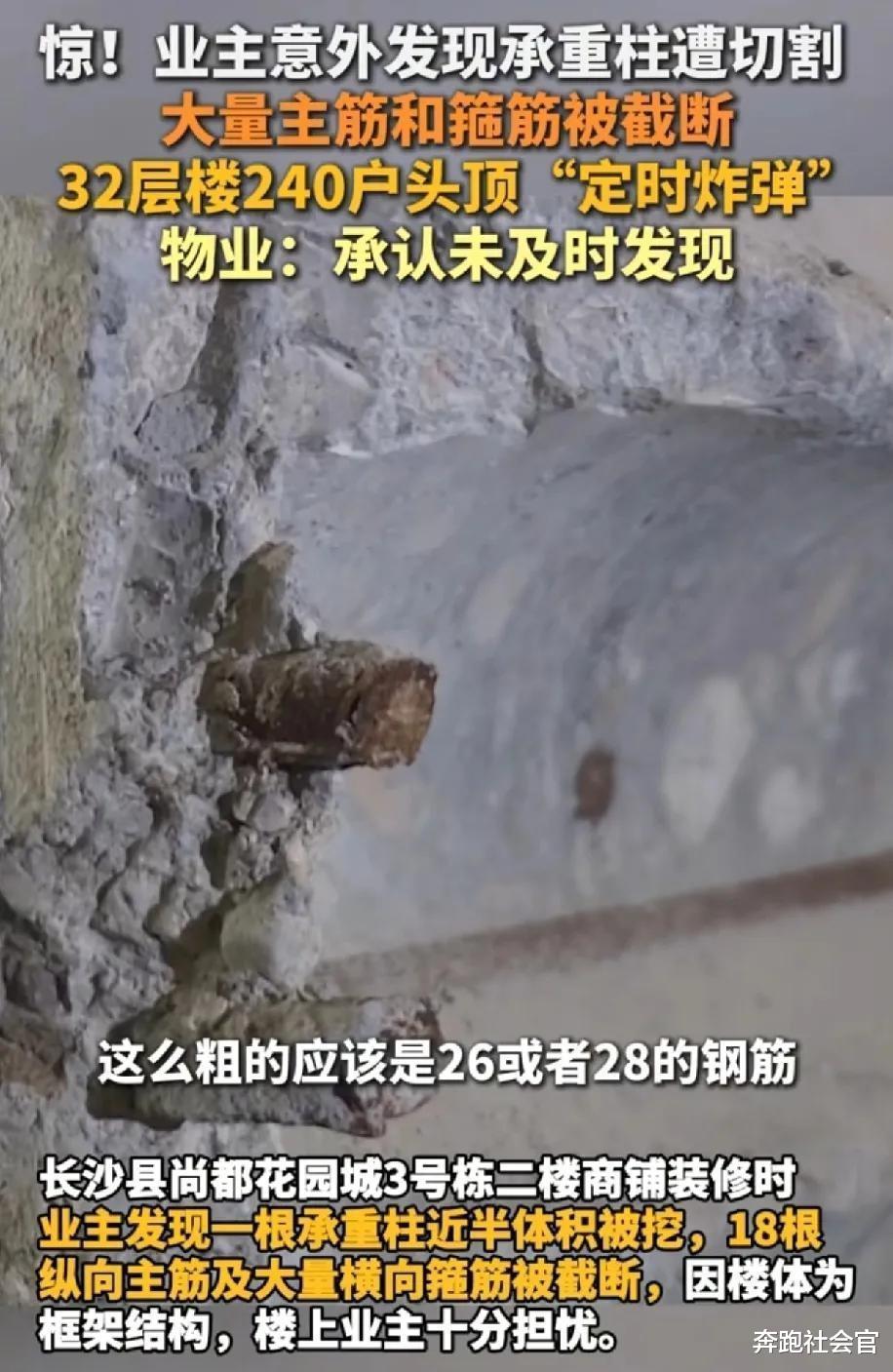 混凝土渣里扒出13根断钢筋,32层高楼秒变"酥脆饼干"!长沙尚都花园的业主们最近集体体验了现实版《死神来了》。这个住着240户人家的百米高楼,竟被发现在23层商铺位置,有根承重柱被活生生切掉半截,裸露的钢筋像被啃过的玉米棒,仅靠6根临时钢柱苦苦支撑。