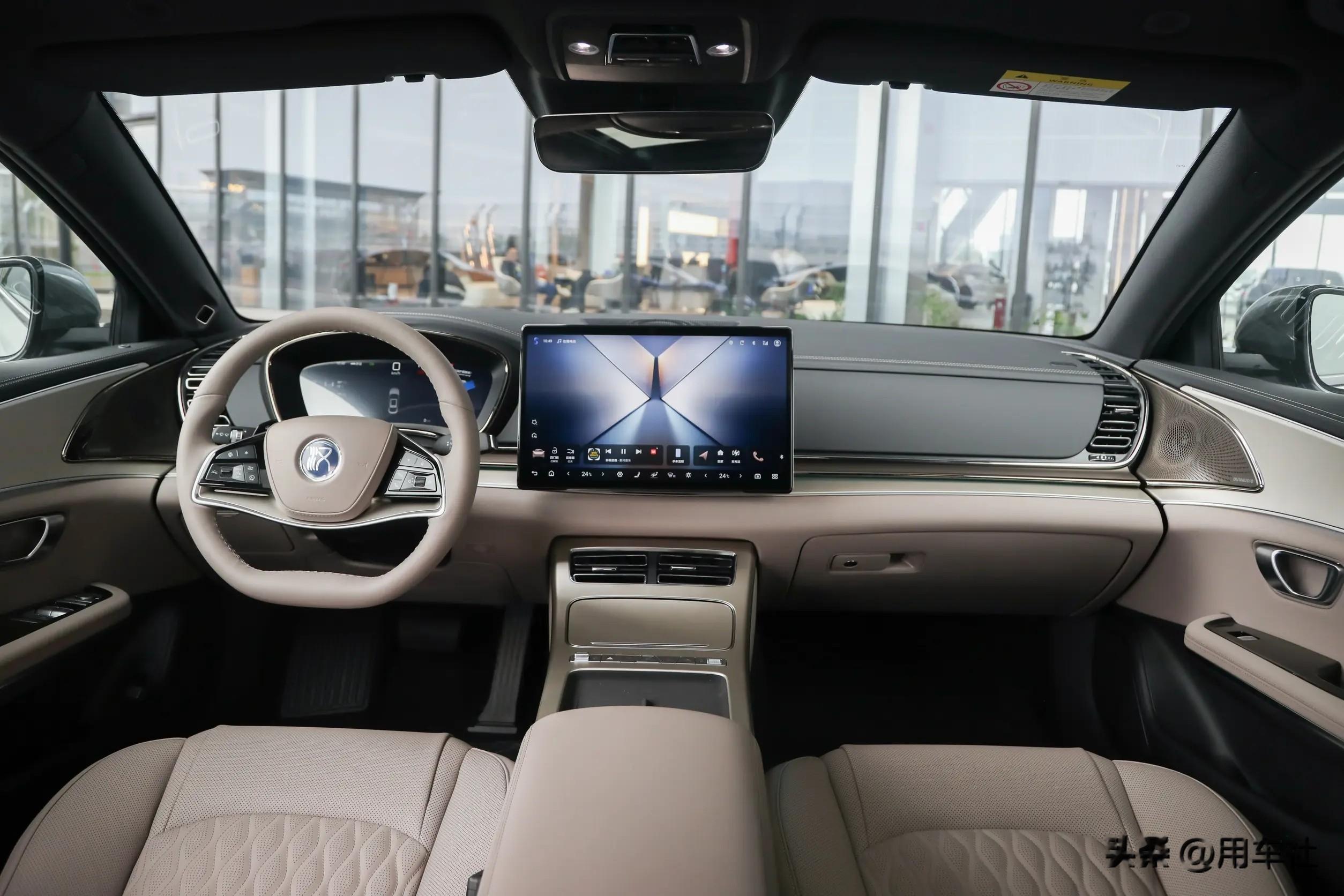 来到车内,新款汉DM-i整个内饰的设计和老款基本没什么区别,不过用料一直都比较讲究,多数地方采用了软性材质和皮质进行包裹。值得一提的是,老款的电子档把换成了更实用的电子怀档,进一步腾出了副仪表台的空间,配备了两个放置手机的槽,一个能够实现无线充电功能。内饰面板也从原来的高光黑色变成了哑光色,看上去更有质感,也更耐脏,高配甚至还有车载冰箱。