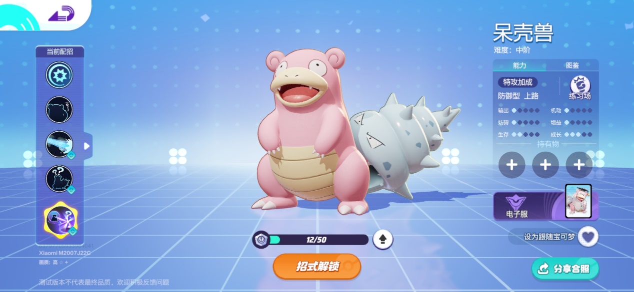 首先说每个宝可梦,其实是有不同的技能分支,比如皮卡丘,就有福特攻击和十万伏特两个分支,选择的技能不同,分支也不同了,定位也不同了。其次就是每个宝可梦都有自己持有物,相当于出生就有了的装备,在局内就不用再去纠结装备了。