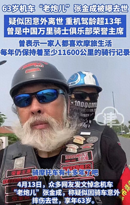 4月12日,有爆料称,机车“老炮儿”张金成不幸去世,终年63岁,当天,家属也对外发布了讣告,透露张金成是4月12日凌晨1时11分离世。