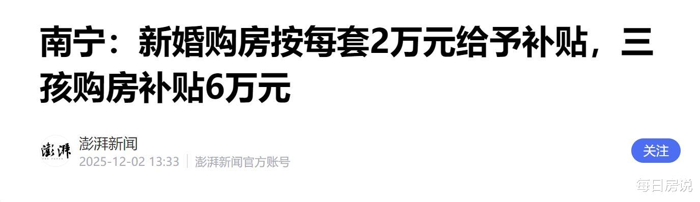 12月1号广西南宁直接发布,买房就给补贴,最高6万;常州也发布,购买新建商品房直接按照房款的15%,最高20万封顶补贴,买市场存量房的,最高给补贴18万。