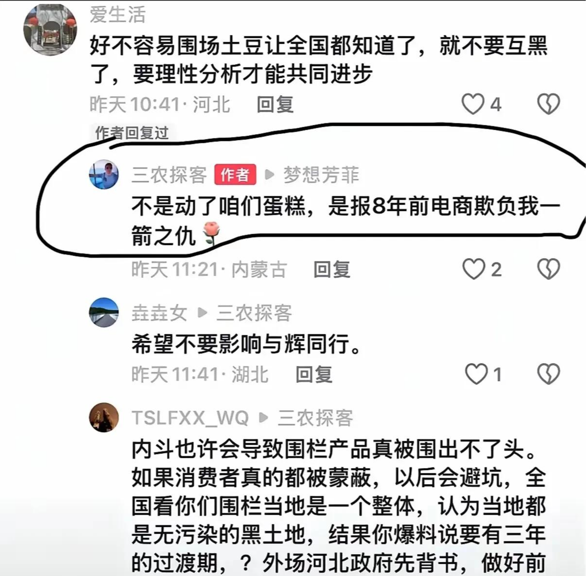 在众多质疑声中,王海最终没有顶住压力,说出这次打假的相关数据和所谓的证据是木兰围场当地一名叫做“三农探客”的网友提供的,经过深挖,大家发现这个爆料这些不实的信息的人原来是为了一己私利,是因为电商挡了他的财路,即使损害了自己家产品的口碑都在所不惜!这样的人真无法评价!