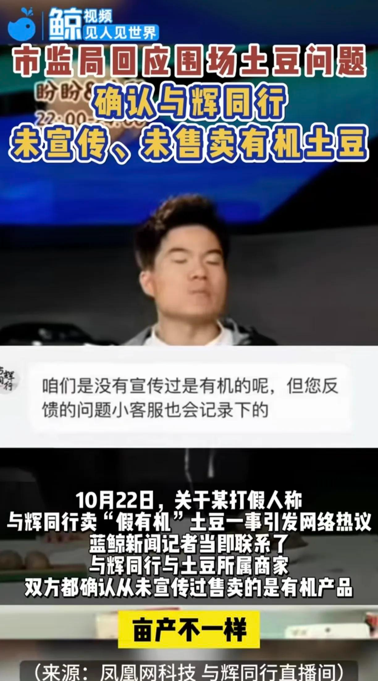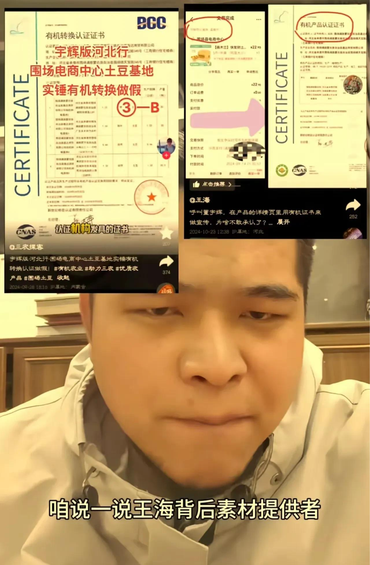 可宇辉在介绍土豆时全程没有提到“有机”二字,这个事近期也得到当地市监局的通报正名,所以宇辉不存在虚假宣传的问题,这个事就已经狠狠打了王海的脸!