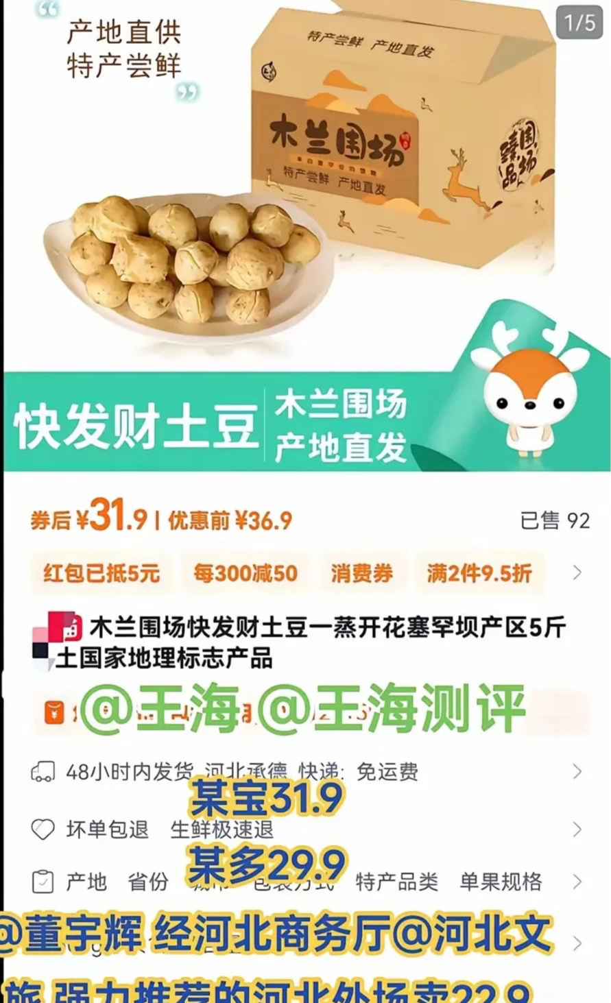关于王海最后始终强调的宇辉上架土豆贵的问题,大家也都查找了价格,没想到某选的货架,还有某多,某宝的上更贵,真的让人不胜唏嘘,宇辉助农真的太艰辛了!