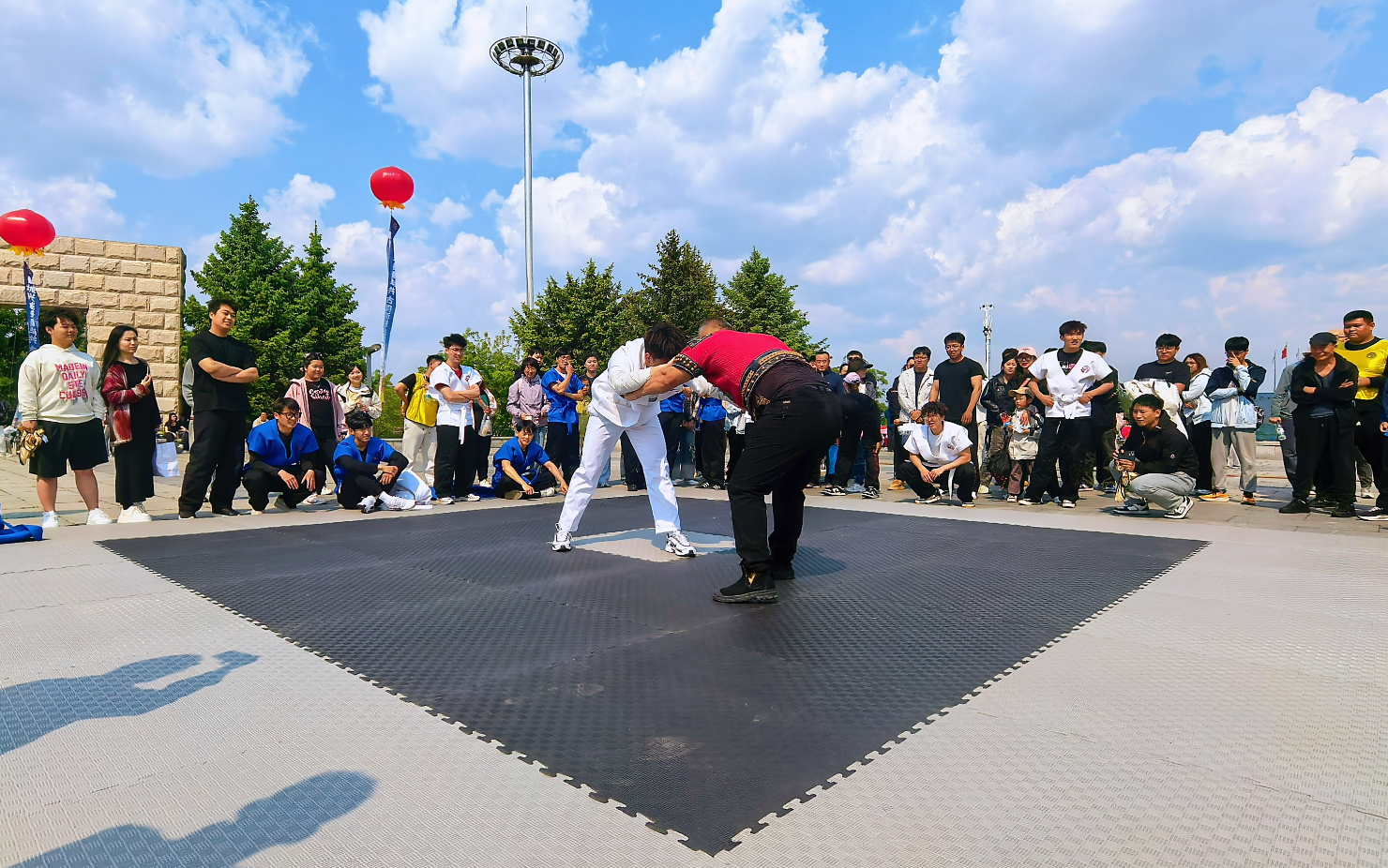 在文化交流互动体验区,同样热闹非凡。两地剪纸非遗项目“山海吉缘”主题作品吸引众多游客驻足欣赏,品味剪纸艺人精湛技艺与美好寓意。兴城 “百兴图” 印章体验、宁远古城拓印体验、海滨贝壳手作等活动,让游客触摸历史、感受兴城文化底蕴。南关的油茶体验、老字号美食体验、非遗乐器歌舞等活动也人气高涨。长春光华学院以“莫勒真”大会为切入点的满族体育项目布库、珍珠球、赛威呼、射箭、拔河、拉地弓等,吸引了大批游客的参与。活动现场,人头攒动,欢声笑语,品油茶,赏非遗,市民游客脸上洋溢着幸福的笑容。