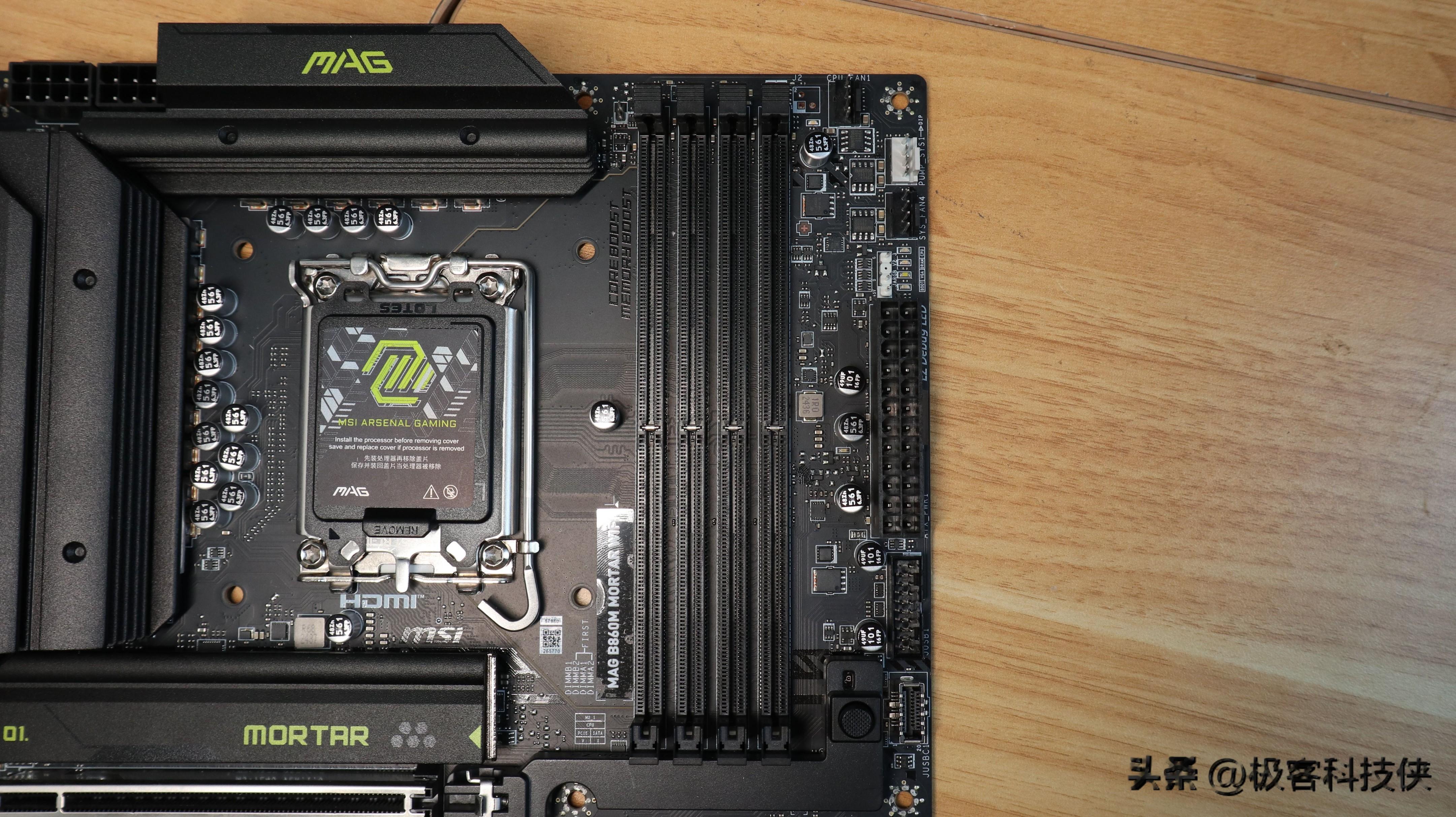 CPU供电接口也是足够良心,MSI微星MAG B860M MORTAR WIFI迫击炮主板一下黑了8+8PIN的组合2,即使后续升级高端CPU也没有后顾之忧了。