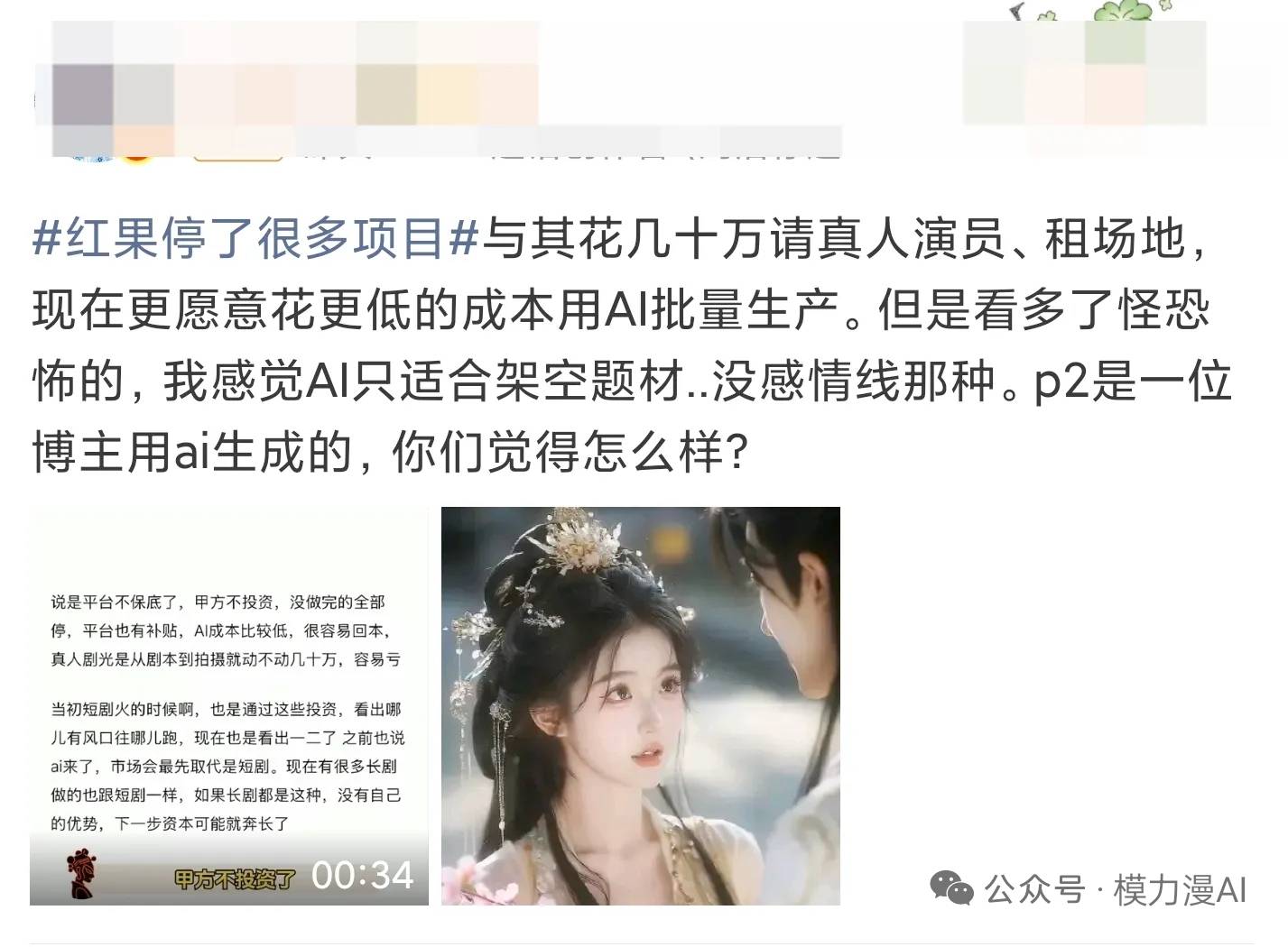 虽然AI短剧来势汹汹,但网上还有不少人反对这一类,说AI做出来的东西没有灵魂,演员动作僵硬、剧情粗糙,不如真人拍的好看。