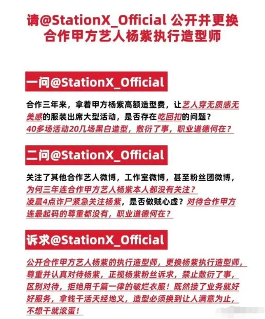 事情看似简单,但背后却反映了多方面的问题。首先,StationX作为一个知名的造型工作室,有着丰富的经验和资源。他们给过多位一线明星提供造型,也享有很高的业界口碑。