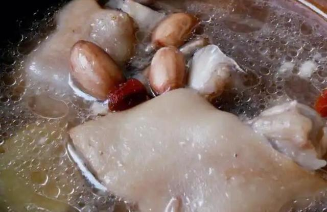 焯水后的猪蹄捞出,放入砂锅中,加入足量的清水。此时,将浸泡好的花生一同放入,再加入几片姜和适量的盐。大火煮沸后,转小火慢炖,让猪蹄的胶原蛋白和花生的香气充分融合。炖煮过程中,需不时撇去浮沫,保持汤的清澈。