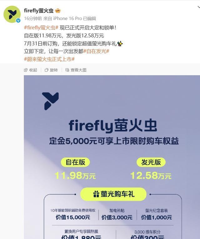 萤火虫上市:11.98万就能“点亮”蔚来?恐怕没那么简单!