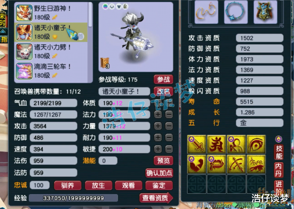 9技能高连童子,新打成的宝宝,同样4赐福,成长资质需要慢慢养!